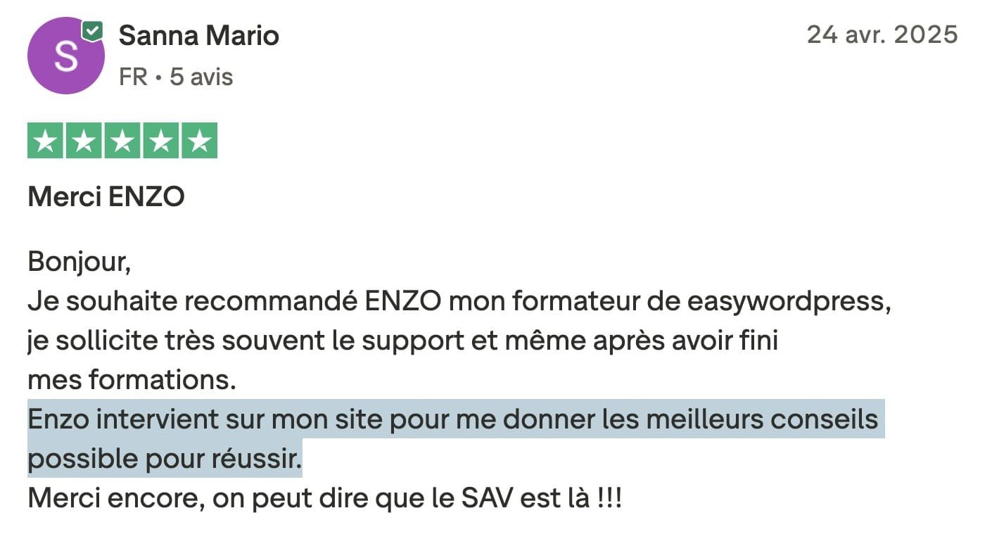 Si tu as d’autres questions, tu peux me contacter à contact@easywordpress.fr.